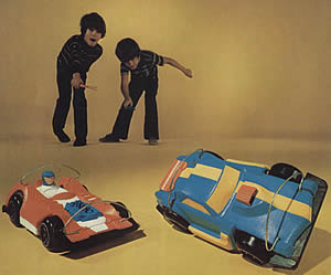 Number: 4119-4 Realistically designed stunt cars that the kids will really flip over! Just zoom a Zip Rod out in front with the special zip rod handle . . . the action is a lot like bowling, but watch the car go! Any surface will do, and once released it does everything a real hot rod does—spins out, flips over, or zips straightaway to the finish. The cars are engineered so that the hot rodder himself can set the gears and call the action at distances up to 50 feet. The cars are nine inches long, of a molded-body construction. The cars come with rollover safety bars and the vehicles come in exciting racing colors like the real thing.